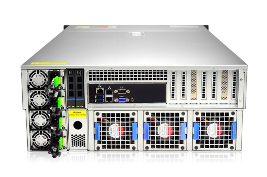 | GPU卡 | 支持8颗A800或10张全高全长双宽PCIe接口GPU卡,同时后置最大支持10个PCIe标准插槽 |